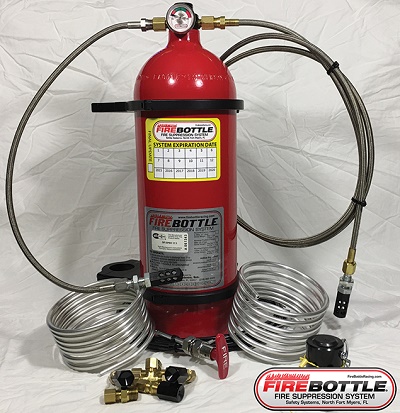 10 automatic manual pull system specifically designedfor the needs of the Lucas Oil Dirt Late Model Series and DIRT Motorsorts. The bottle is made of aluminum, the dimensions are 18.95 X 5.25, and weighs 18 lbs. Each AMRC has two line that would be automatically set off, one at 24" and the other at 84". Also has 3 Manually operated nozzles, one suggested for the cockpit and the others in the engine compartment. This bottle is SFI’d. System comes with 1.25 roll bar mounting brackets, 5 foot pull cable, and 8 foot of steel tubing for the manually operated nozzles
