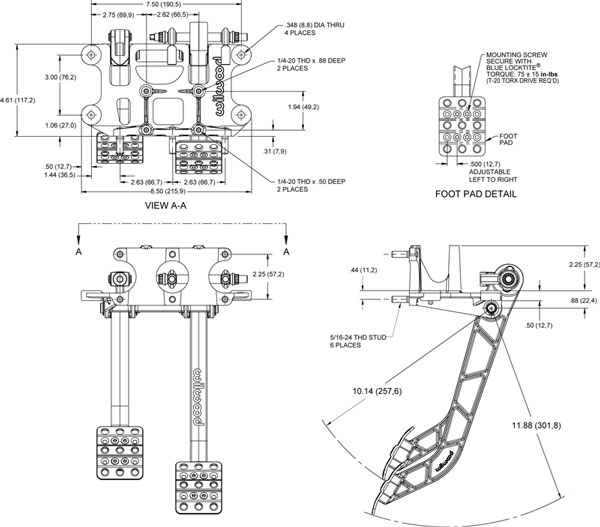/Products/WILWOOD (WIL)/PEDALS and BALANCE BARS/Adjustable-Trubar Dual Pedal - Brake / Clutch - Re