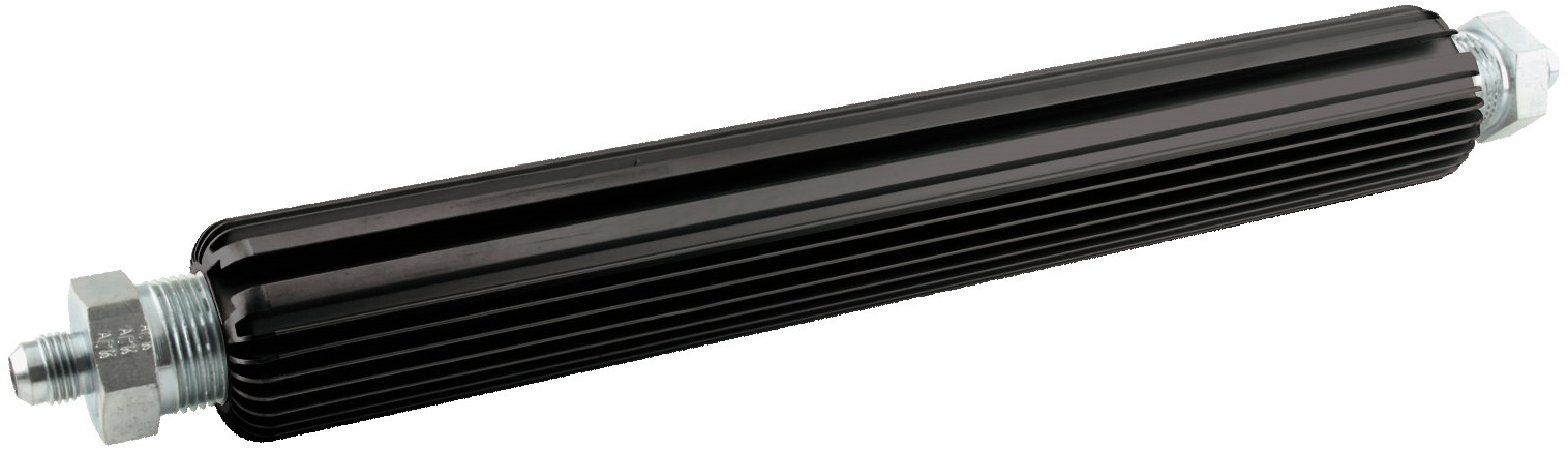 Fluid Cooler - 14-1/2 x 1-3/4 in - Heat Sink - 6 AN Male In/Outlet - Aluminum - Black Anodize - Universal - Each