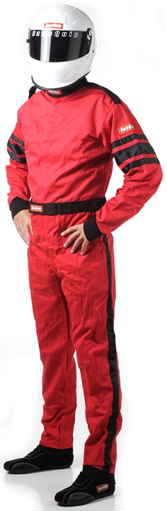 Suit - 110 Series - Driving - 1 Piece - SFI-3.2A/1 - Single Layer - Fire Retardant Cotton - Black/Red Stripe - Large - Each